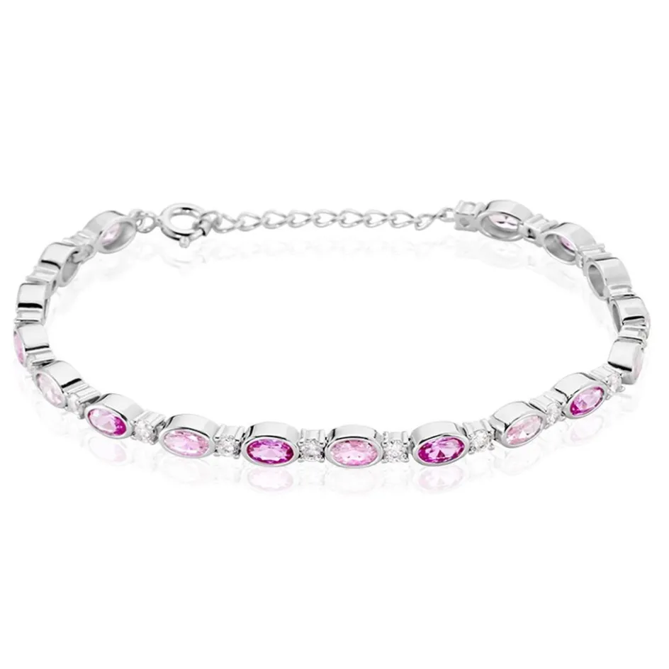 Bracelet Argent 925/1000 Oxydes De Zirconium Alternance Roses Sertis Clos 19cm