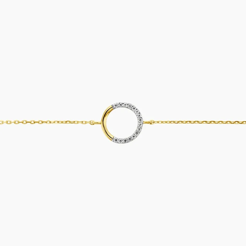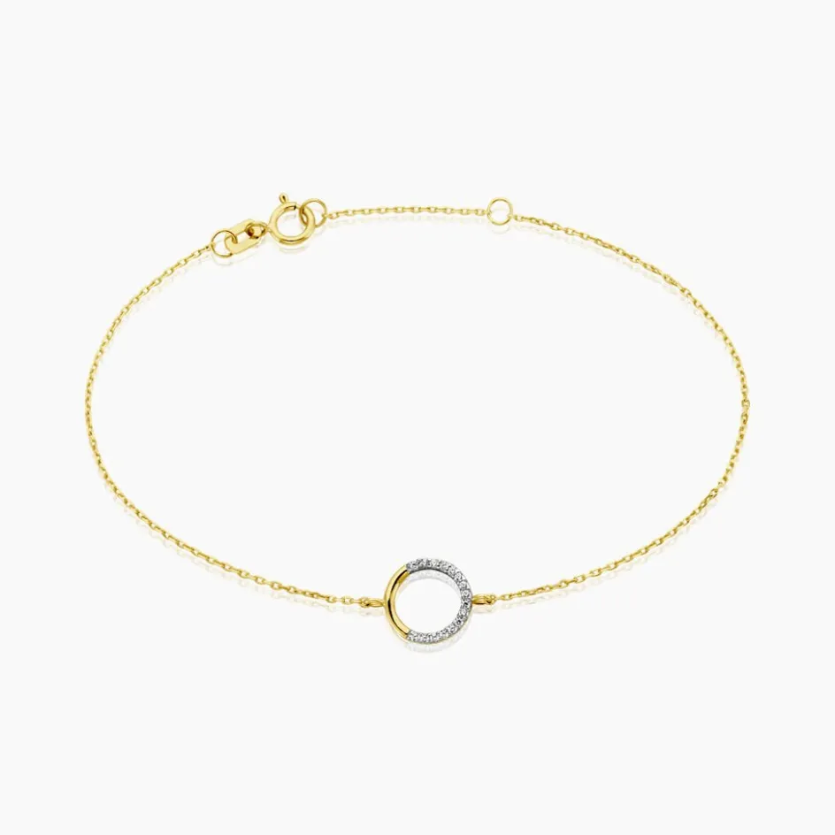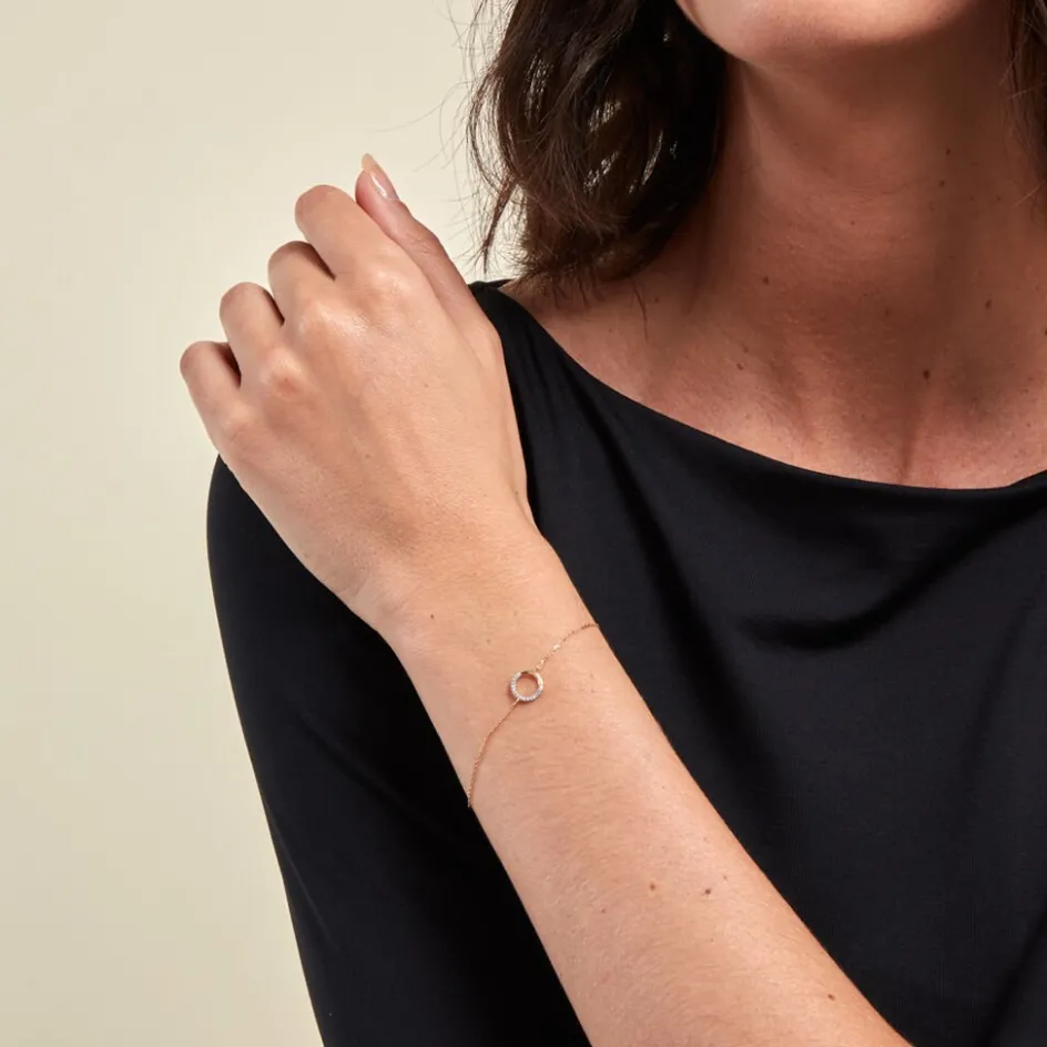 Bracelet Or Jaune 375/1000 Cercle Oxyde De Zirconium Serti Pavage Maille Forcat 18cm