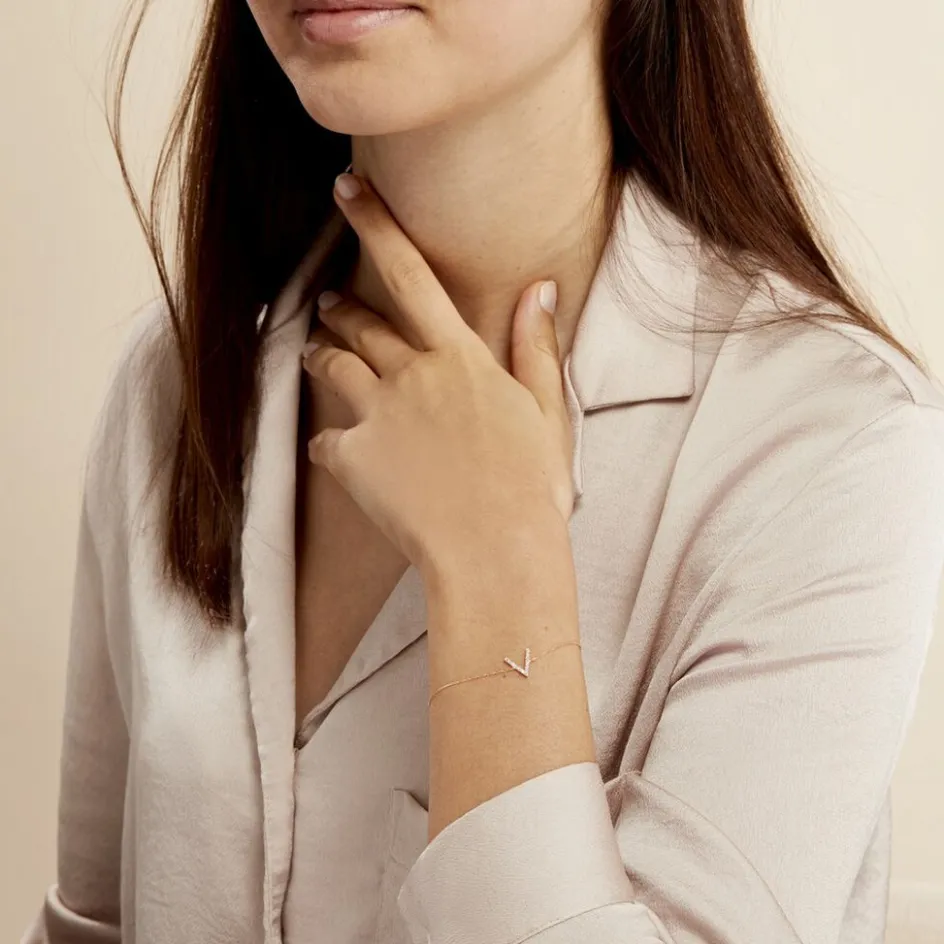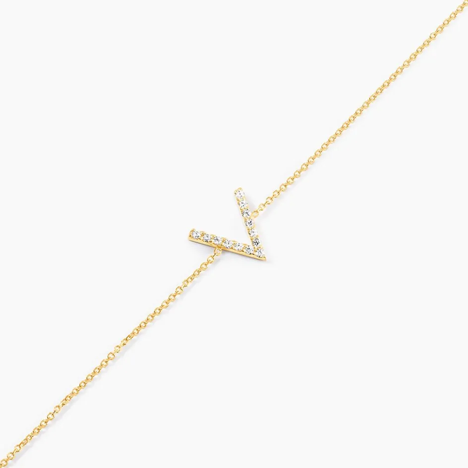 Bracelet Or Jaune 375/1000 Forme V Oxydes De Zirconium 18cm