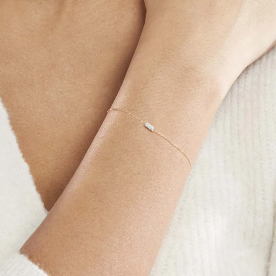 Bracelet Or Jaune 375/1000 Forme Barrette Glitter Argente Maille Jaseron 18cm