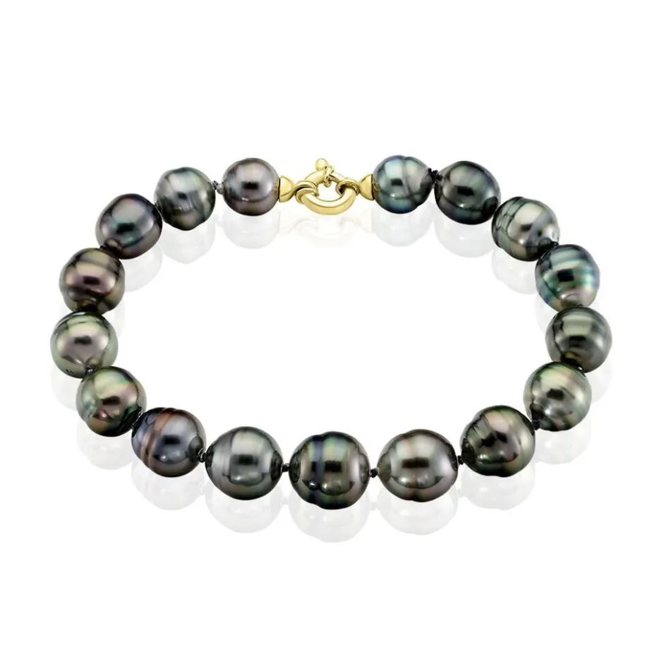 Bracelet Or Jaune 375/1000 Perle De Culture De Tahiti 8/11mm Cerclée 19cm