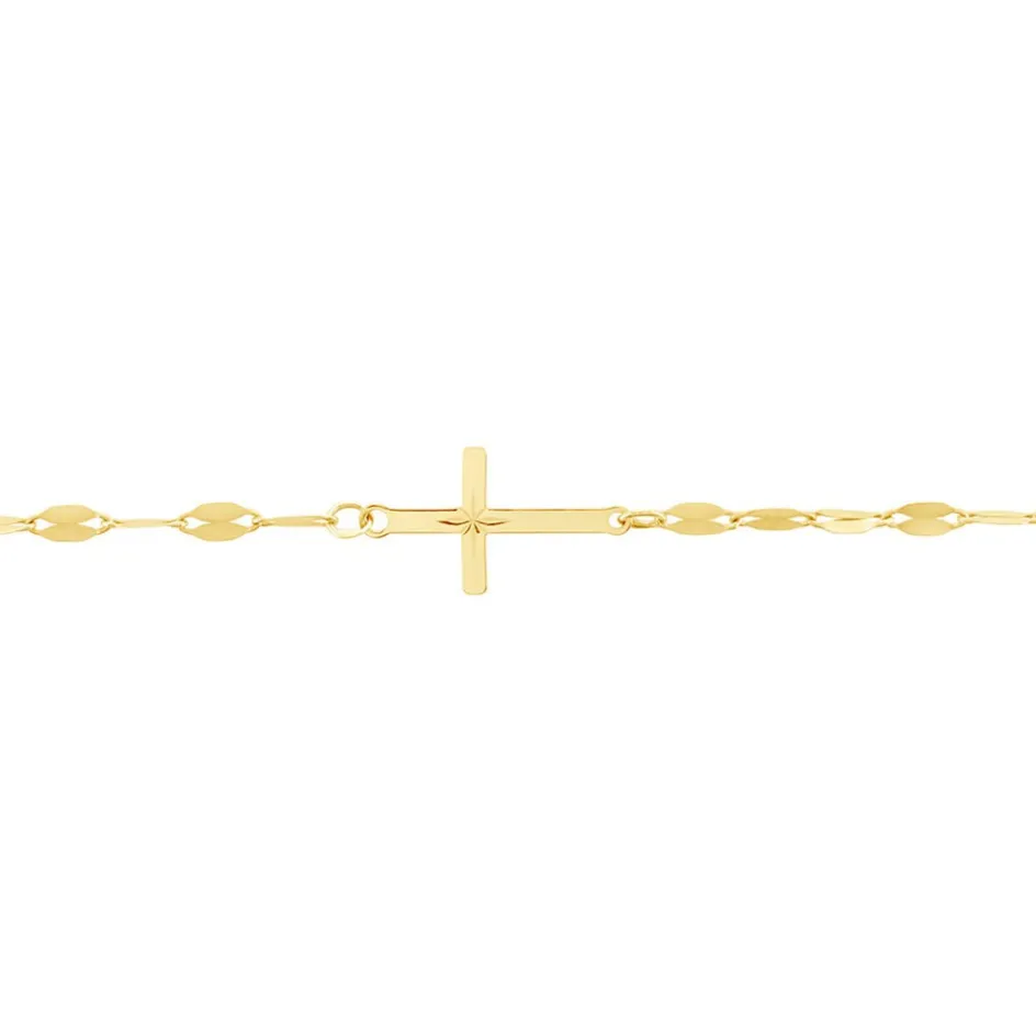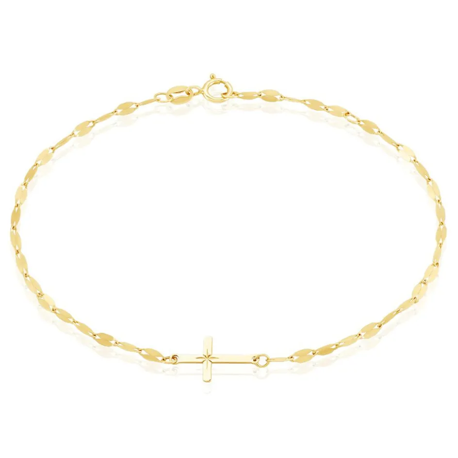 Bracelet Or Jaune 375/1000 Croix Avec Etoile Du Berger Maille Lumina 16+2cm