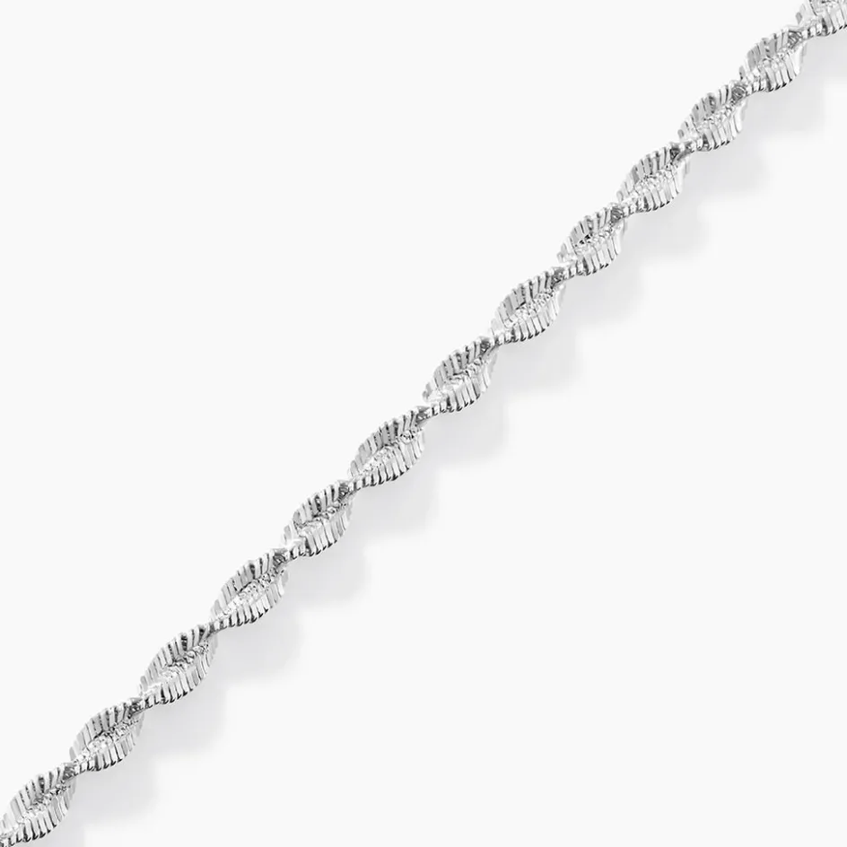 Bracelet Argent Blanc 925/1000 Maille Torsade Diamantee Largeur 3.6mm 18cm