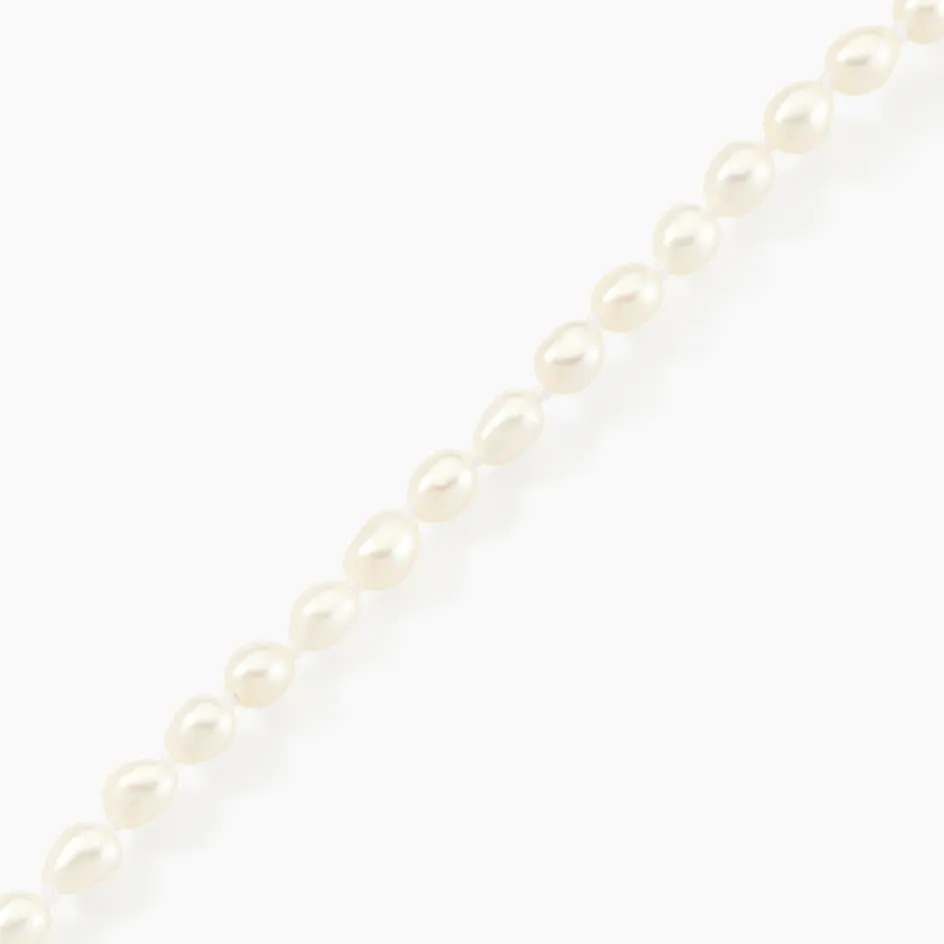 Bracelet Or Jaune 375/1000 Perles De Culture Grain De Riz 4.5/5mm 18cm