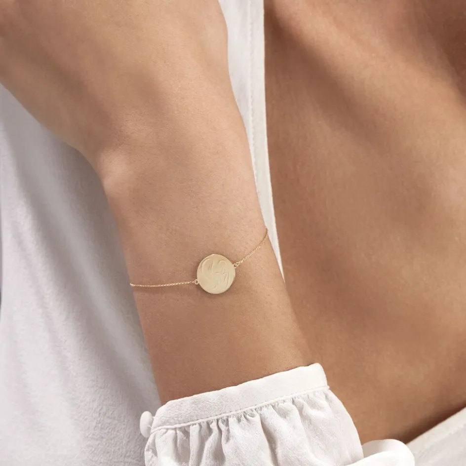 Bracelet Or Jaune 375/1000 Pastille Motif Maman Et Enfant Maille Forçat 18cm