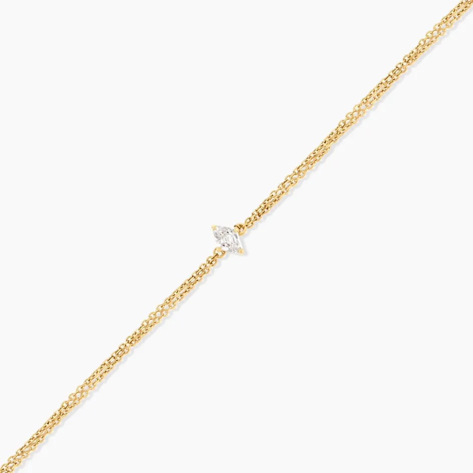 Bracelet Or Jaune 750/1000 Solitaire Losange Diamant Synthetique 0,20Cts Serti Griffes Double Maille Forcat 16+2Cm