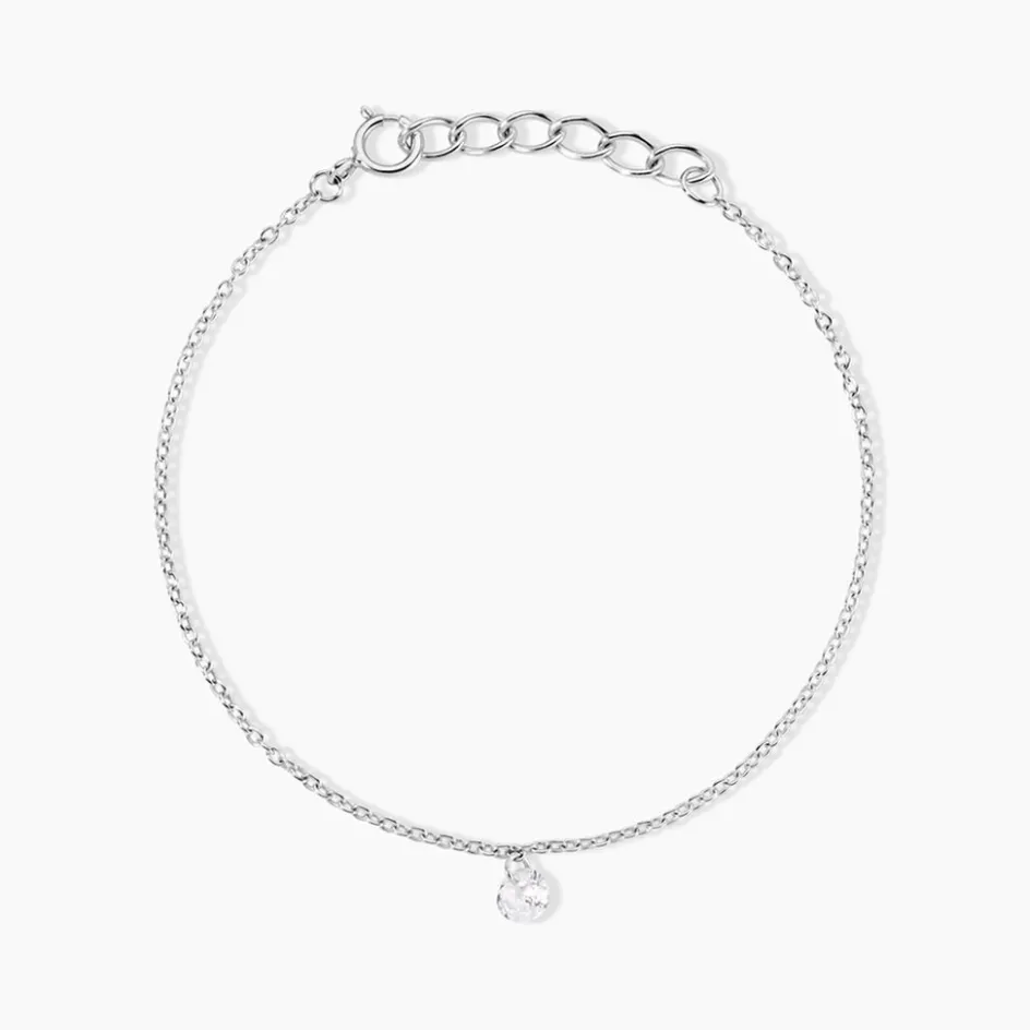 Bracelet Court Argent Blanc 925/1000 Oxyde De Zirconium Perce 1mm Maille Forcat 16cm