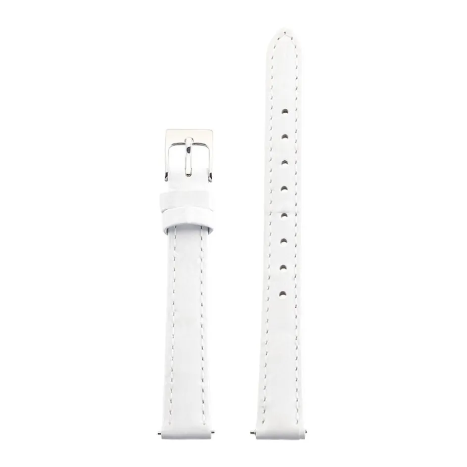 Bracelet De Montre Cuir Alligator Blanc Boucle Argentee 12mm