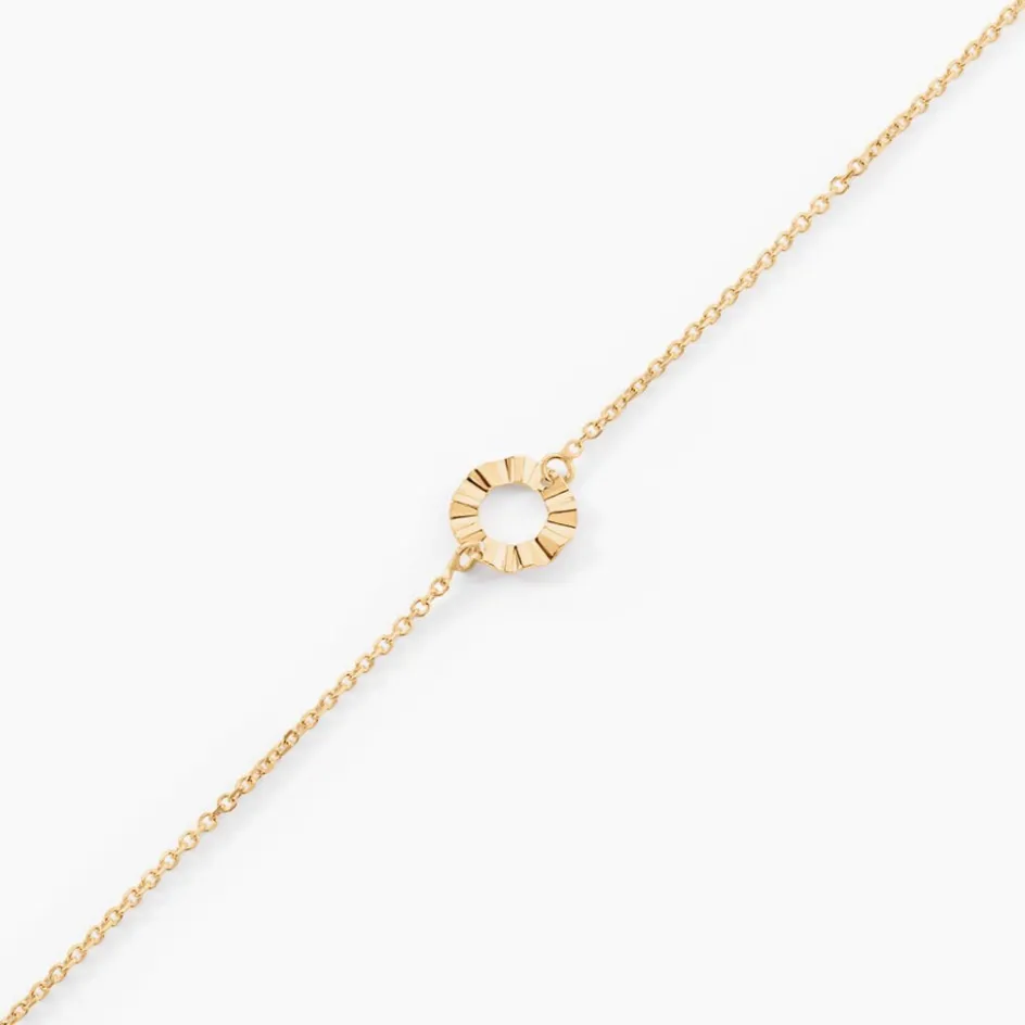 Bracelet Or Jaune 375/1000 Cercle Ajoure Froisse Maille Jaseron 16+2cm