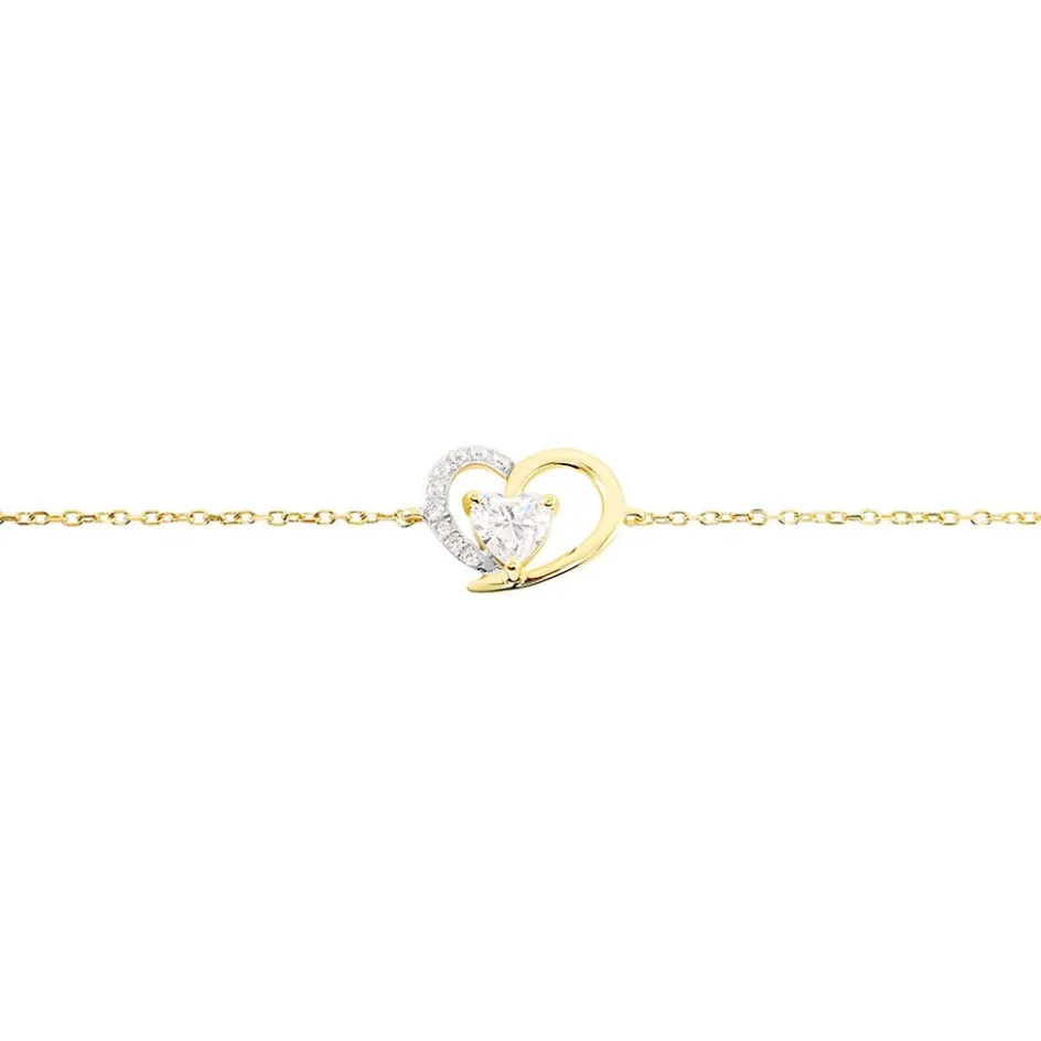 Bracelet Or Jaune 375/1000 C艙ur Oxydes De Zirconium 18cm