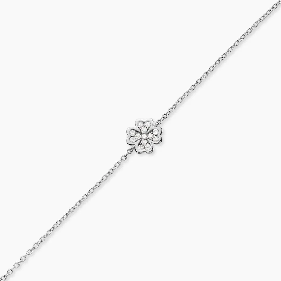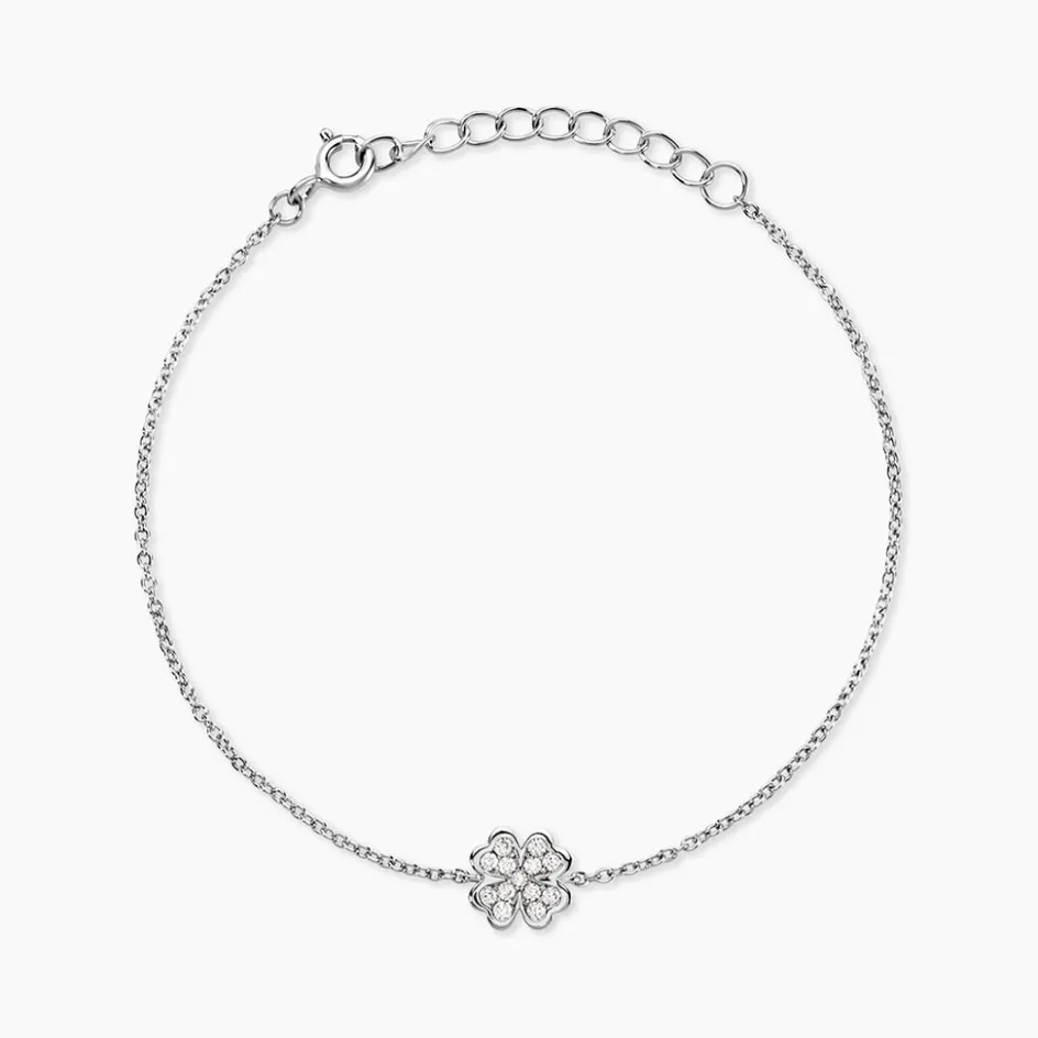 Bracelet Argent 925/1000 fortunata Pavage Oxydes De Zirconium Maille Forcat 16+3cm