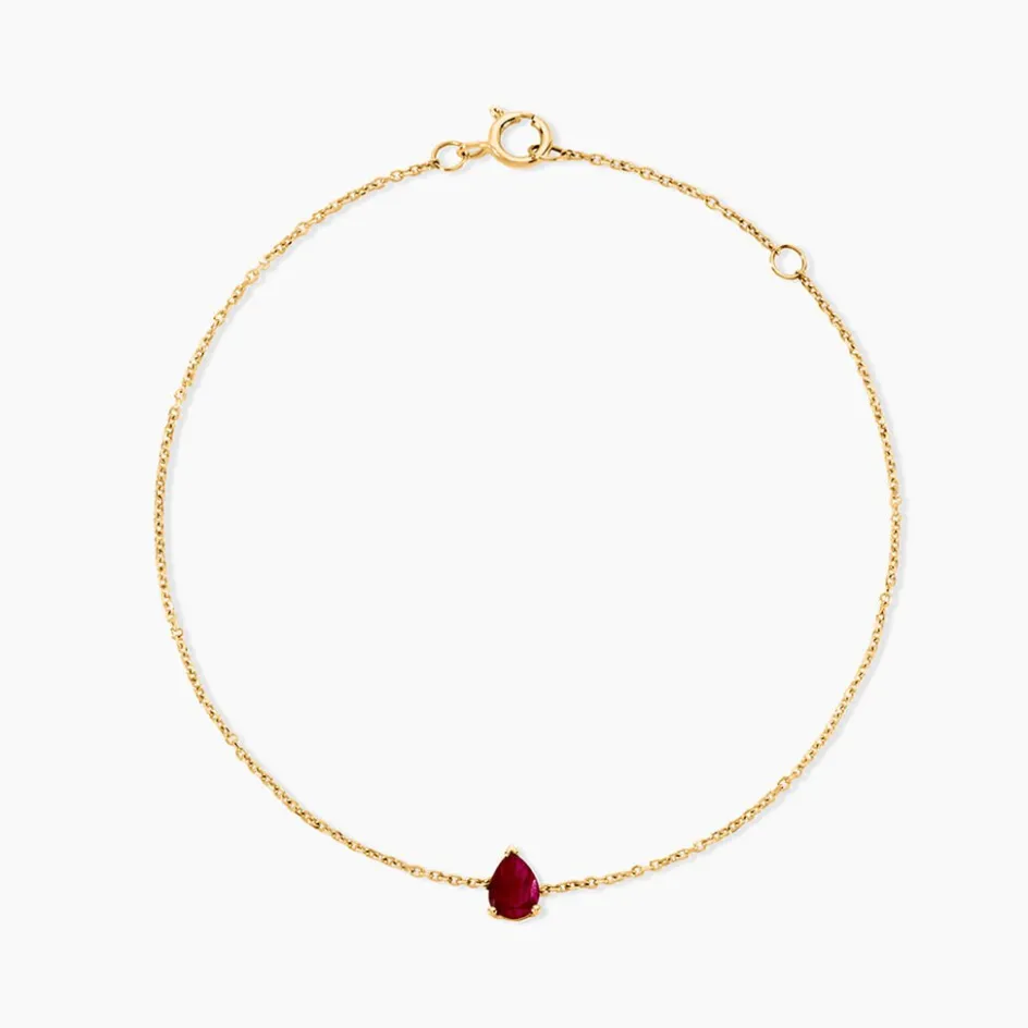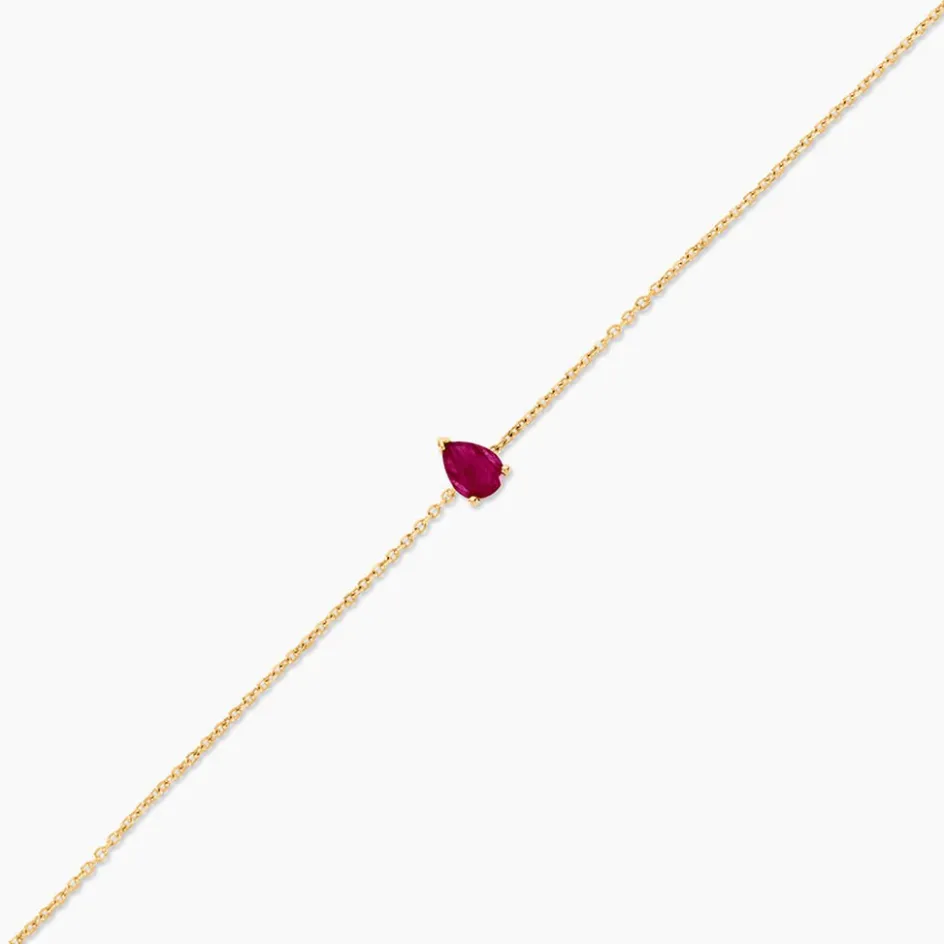 Bracelet Or Jaune 750/1000 Solitaire Rubis Poire 0,4Cts Serti 3 Griffes Maille Forcat 16+2Cm