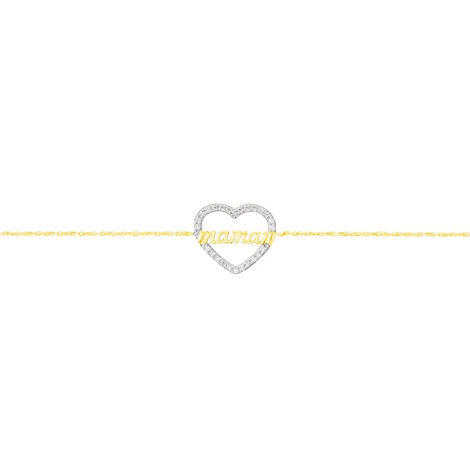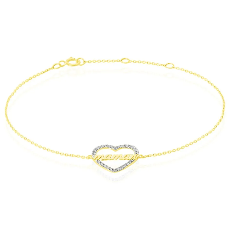 Bracelet Or Jaune 375/1000 C艙ur Et Message Maman Oxydes De Zirconium 19cm