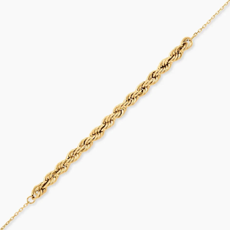 Bracelet Or Jaune 750/1000 Maille Corde 3,3Mm Et Maille Forcat 18Cm