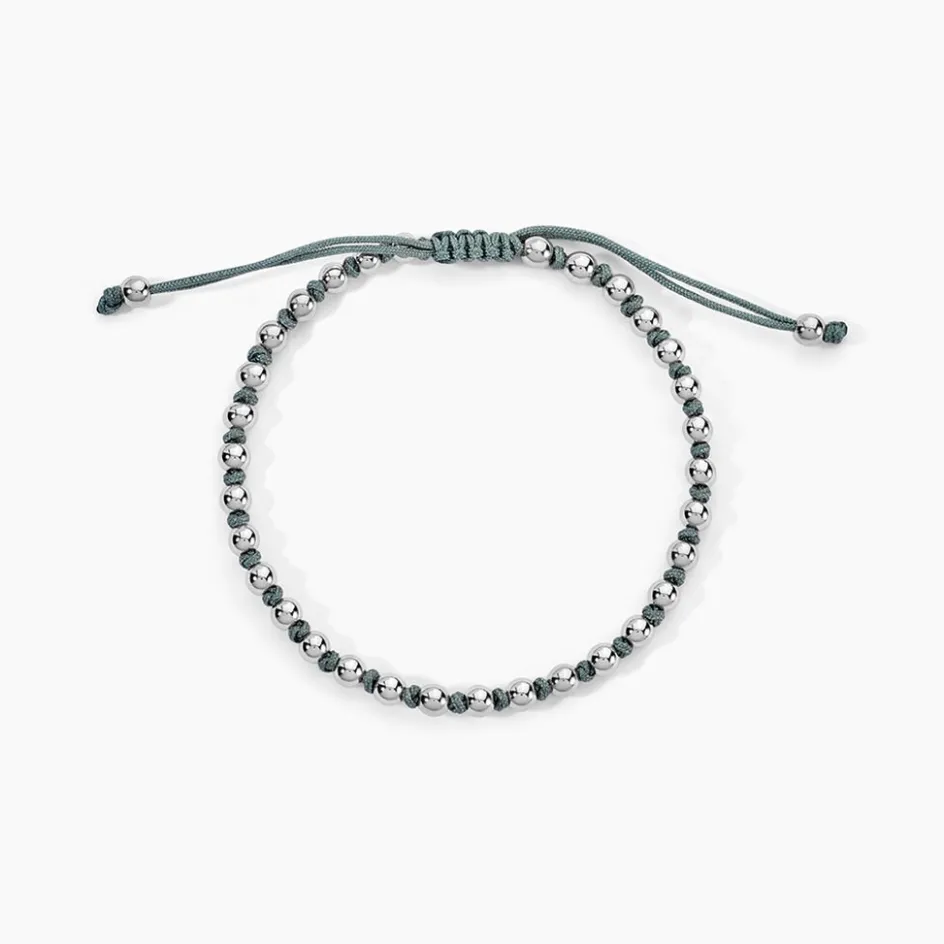 Bracelet Acier Inoxydable Blanc Boules Et Cordon Nylon Gris 18-27Cm