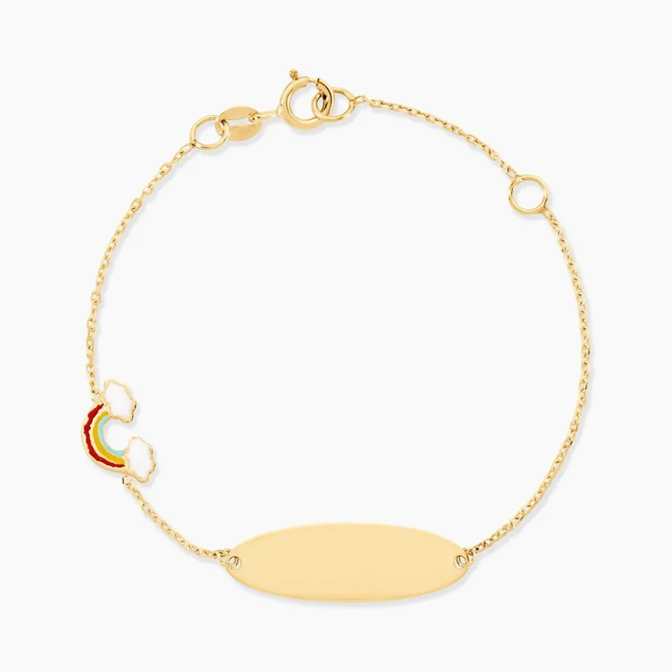 Bracelet Or Jaune 375/1000 Arc En Ciel Et Pastille Maille Forcat 12+2Cm