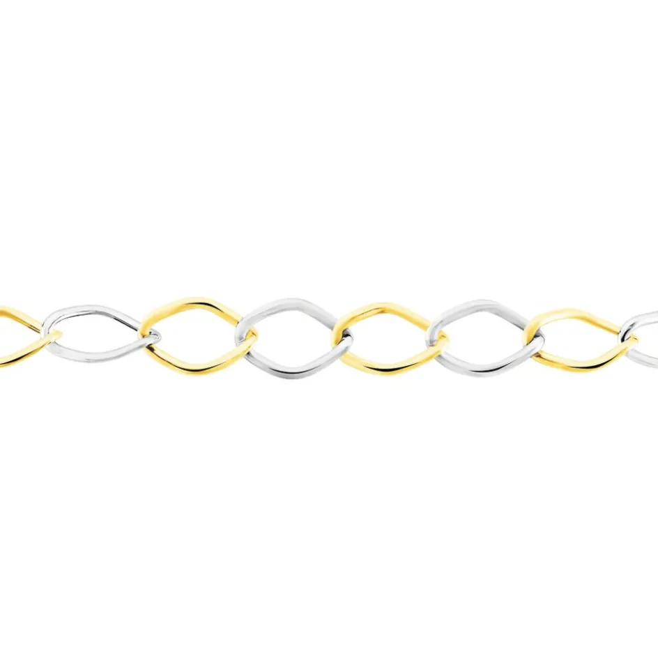 Bracelet Or Bicolore 375/1000 Maille Forçat Losange 19cm