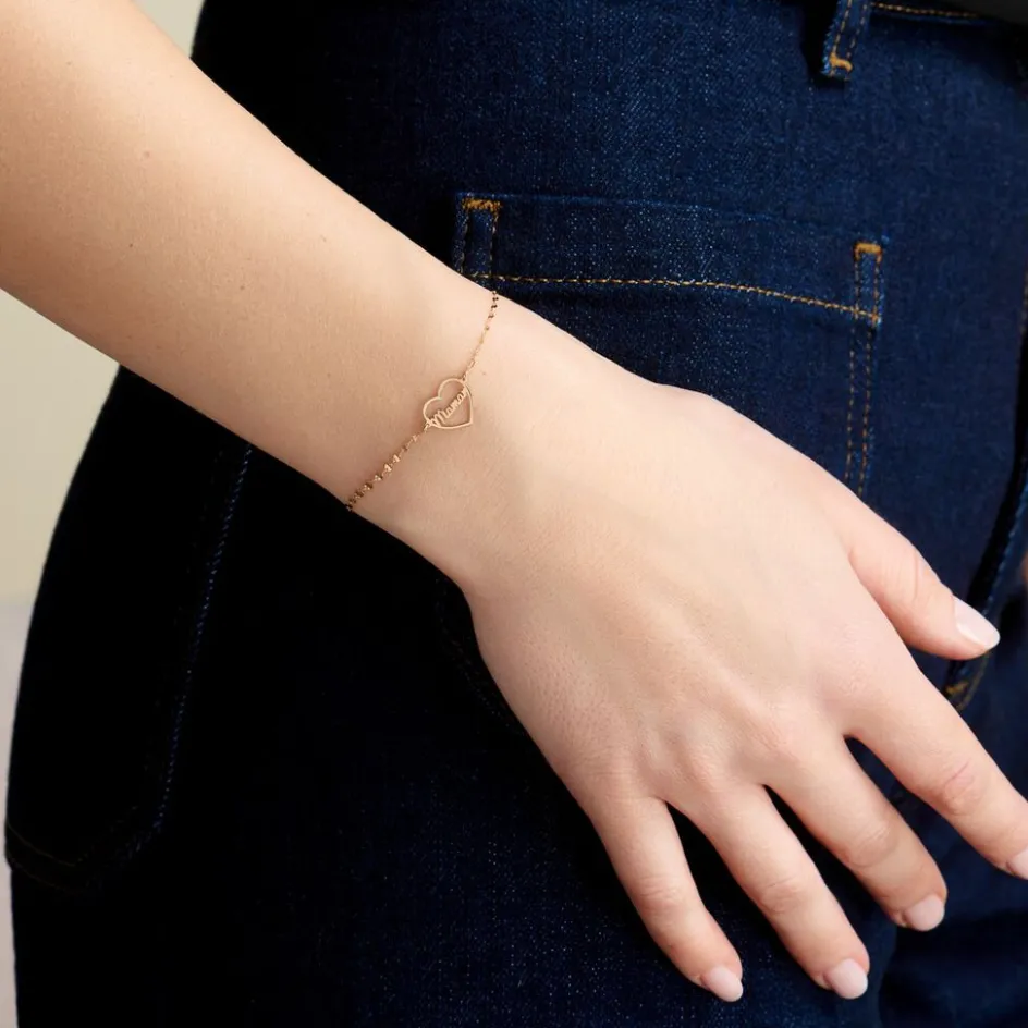 Bracelet Or Jaune 375/1000 C艙ur Ajoure Avec Message Maman Maille Lumina 16+2cm
