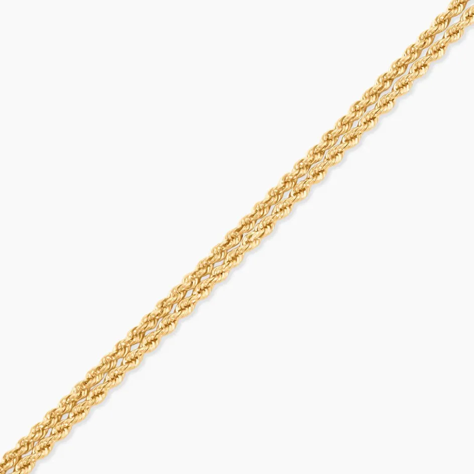 Bracelet Or Jaune 375/1000 Double Maille Corde Largeur 2,2Mm 19Cm
