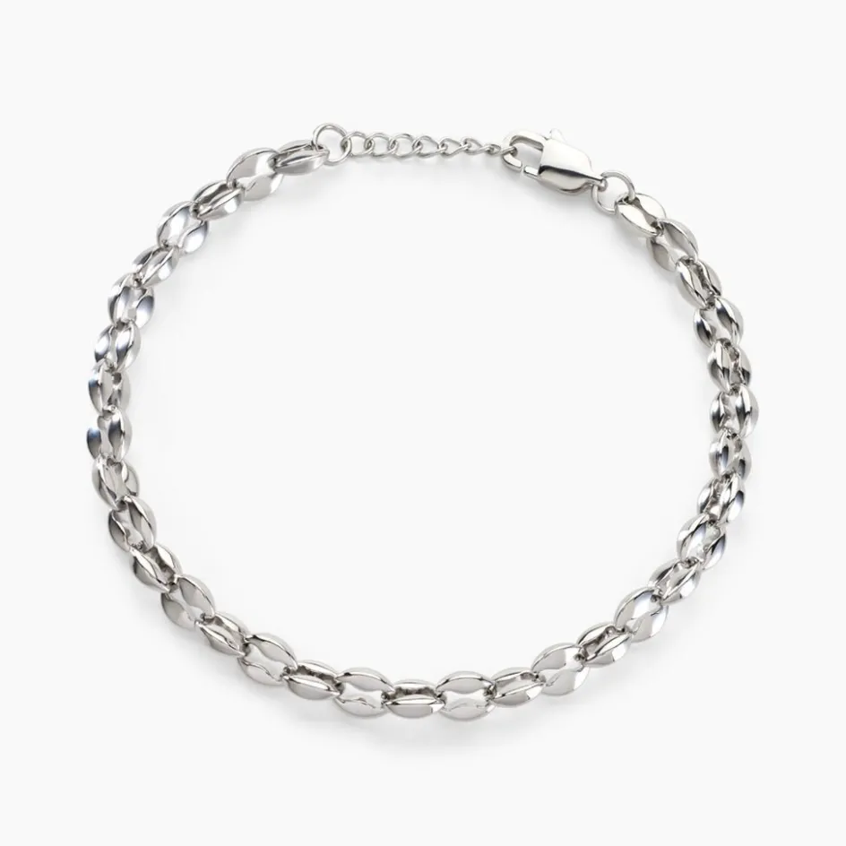 Bracelet Acier Inoxydable Blanc Maille Grain De Cafe Largeur 5mm 19+2cm