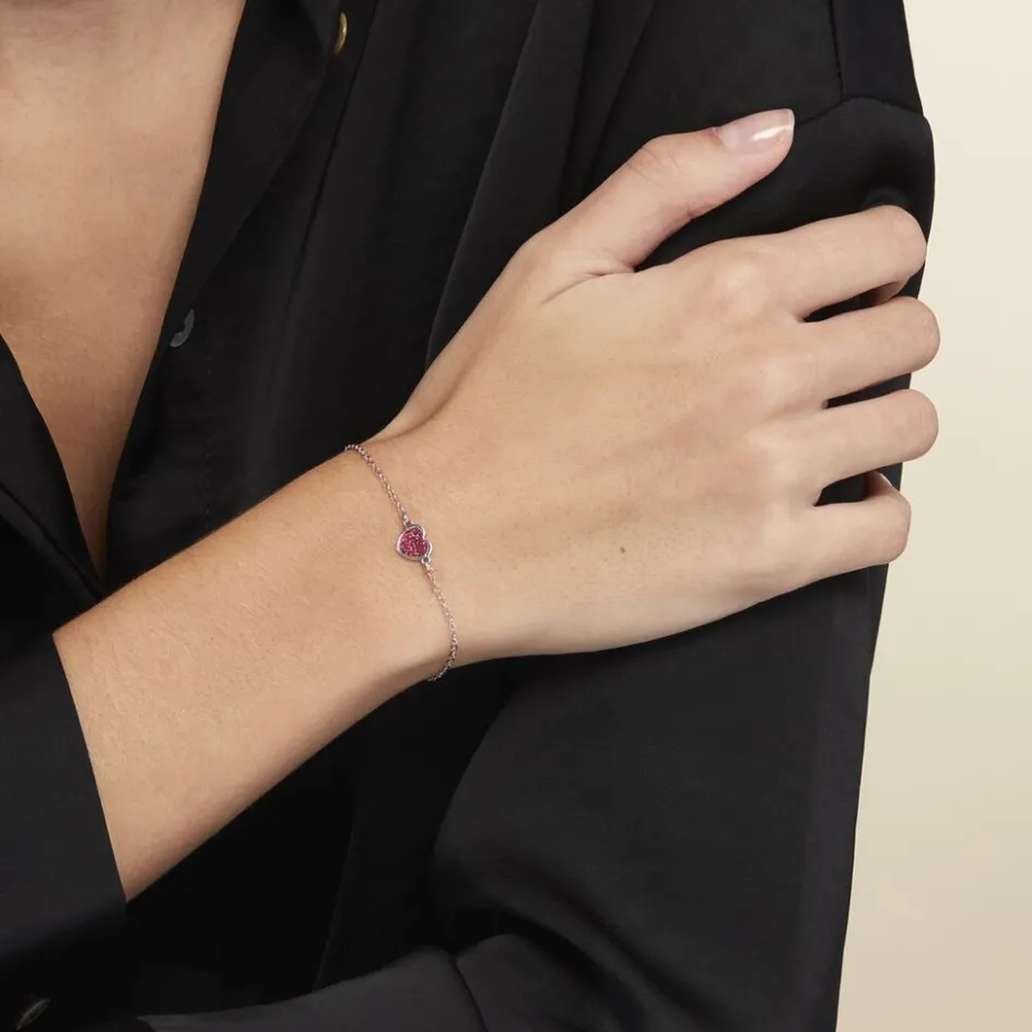 Bracelet Argent Blanc 925/1000 C艙ur Glitter Rose Maille Forcat 19cm