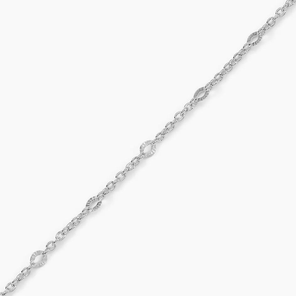 Bracelet Argent Blanc 925/1000 Motifs Ovales Effet Diamanté Maille Fantaisie Largeur 3.7mm 16+3cm