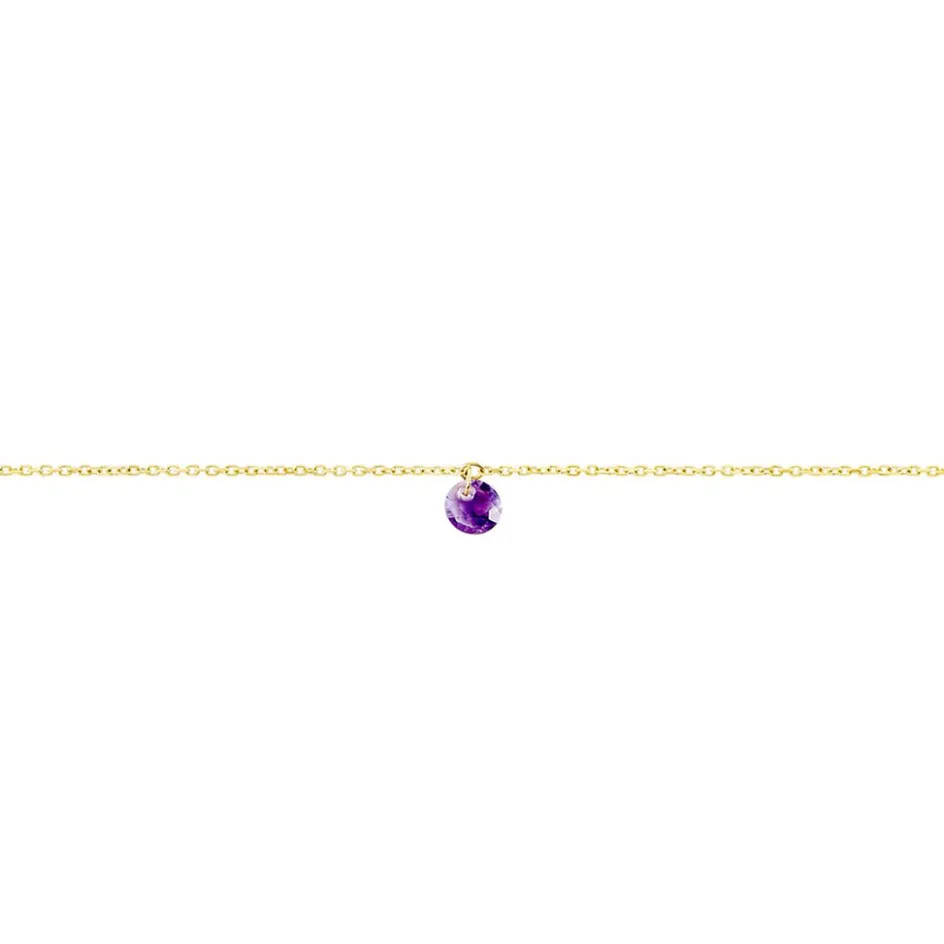 Bracelet Or Jaune 375/1000 Améthyste Ronde Percée 0.25 Cts Maille Forçat 18cm