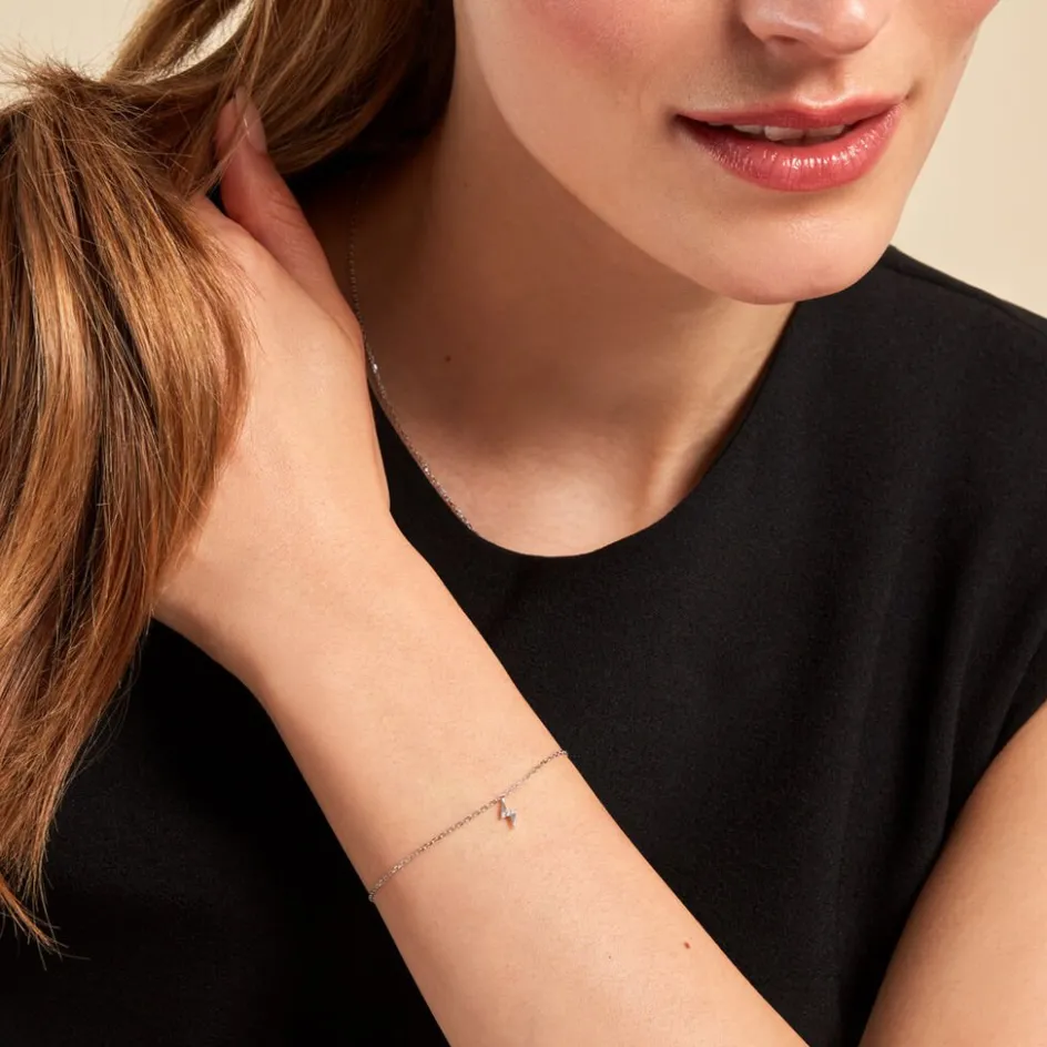 Bracelet Argent Blanc 925/1000 éclair Oxydes De Zirconium Maille Forçat 16+3cm