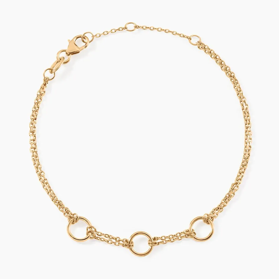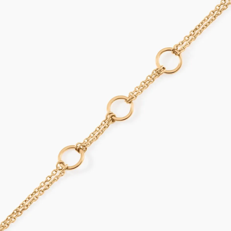 Bracelet Plaqué Or Jaune Triple Cercle Double Rang Mailles Forçat 16+3cm