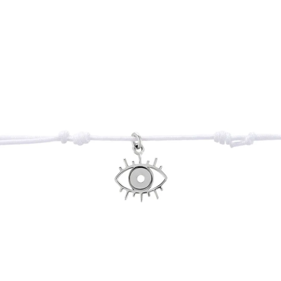 Bracelet Argent Blanc 925/1000 Pampille Oeil Cordon Blanc Ajustable