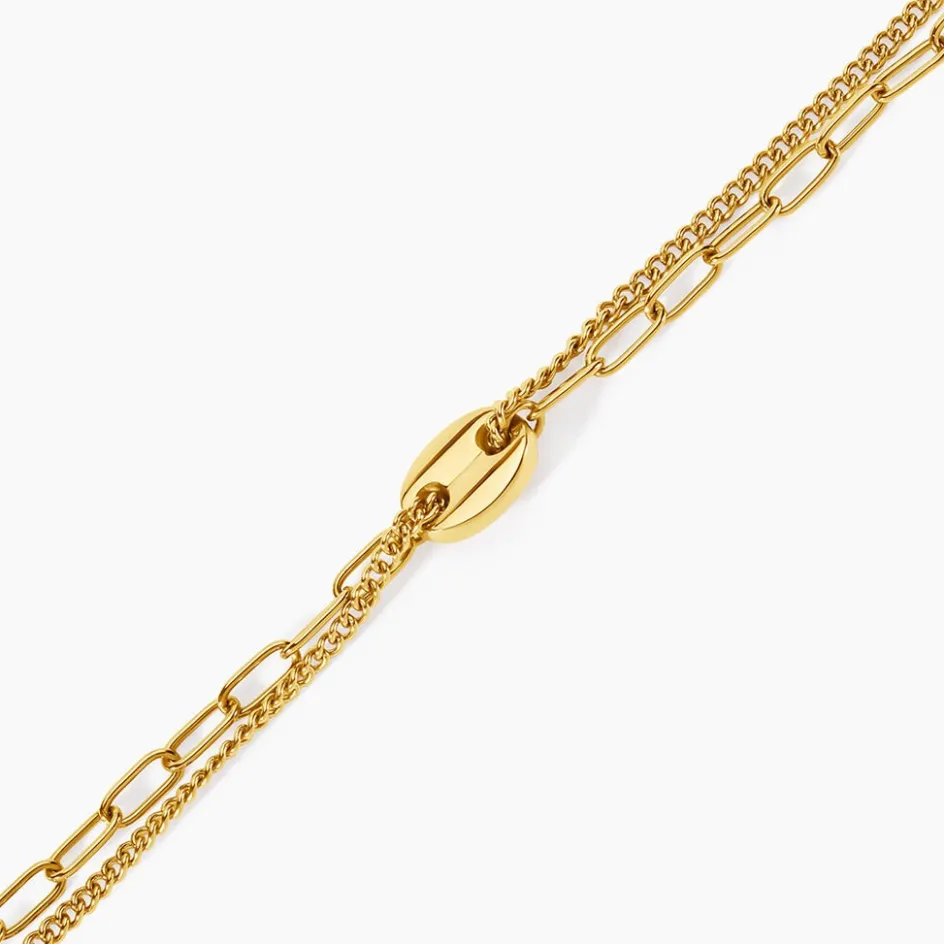 Bracelet Acier Inoxydable Jaune Motif Grain De Café Double Rang Mailles Cheval Et Gourmette