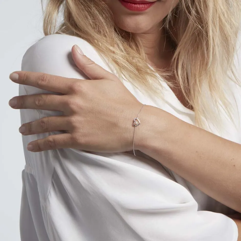 Bracelet Or Blanc 375/1000 Forme C艙ur Ruban De Diamants Pavage Diamants Maille Forçat 18cm