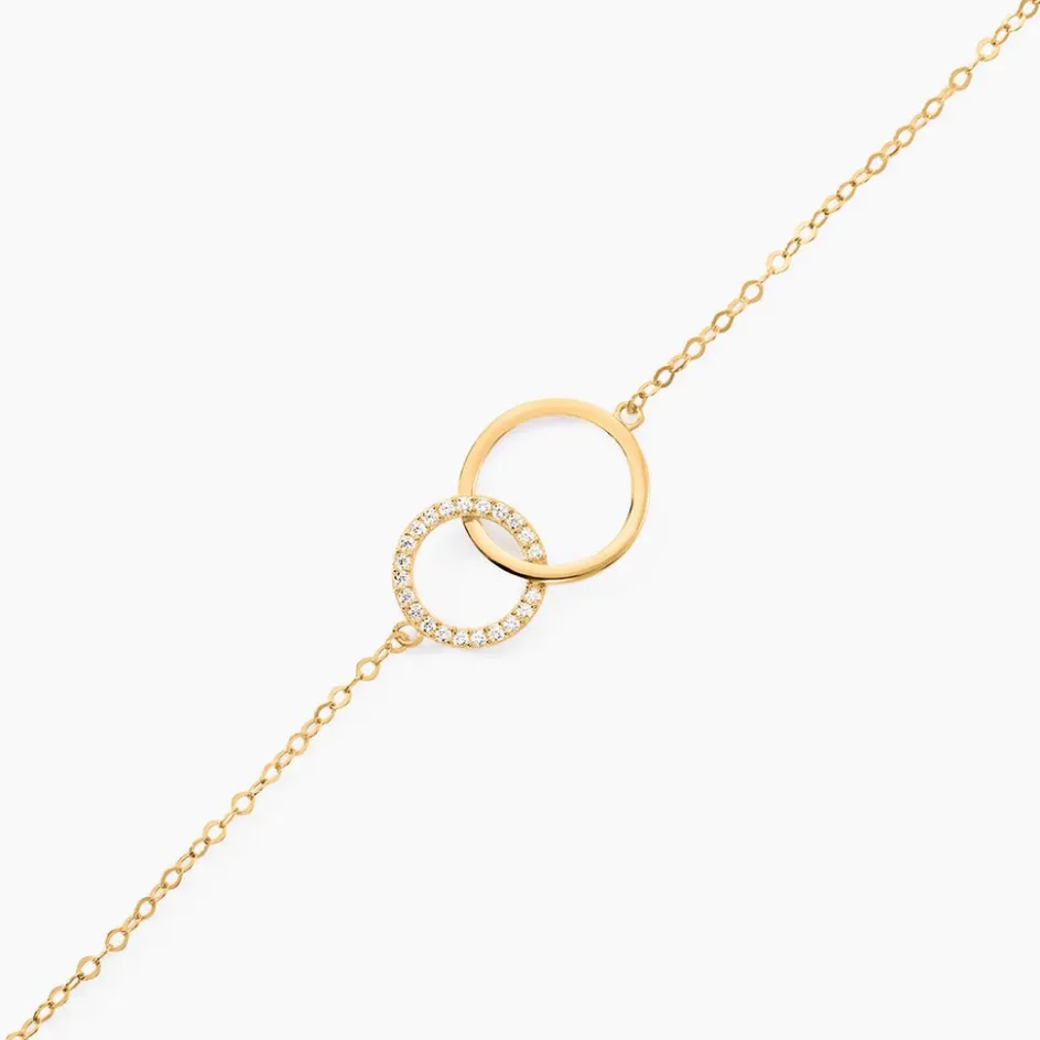 Bracelet Or Jaune 375/1000 Double Cercles Pavage Oxydes De Zirconium 18cm