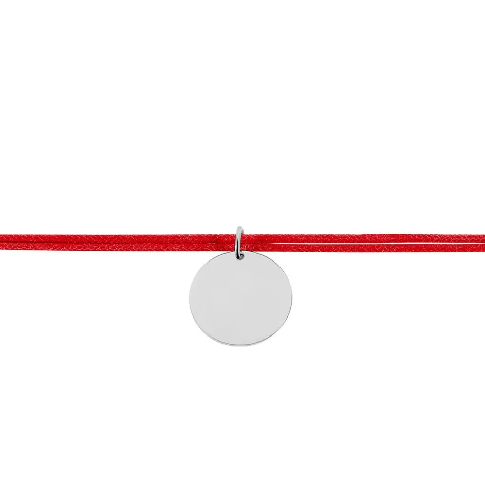 Bracelet Argent Blanc 925/1000 Pastille Cordon Rouge Ajustable