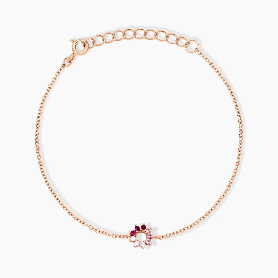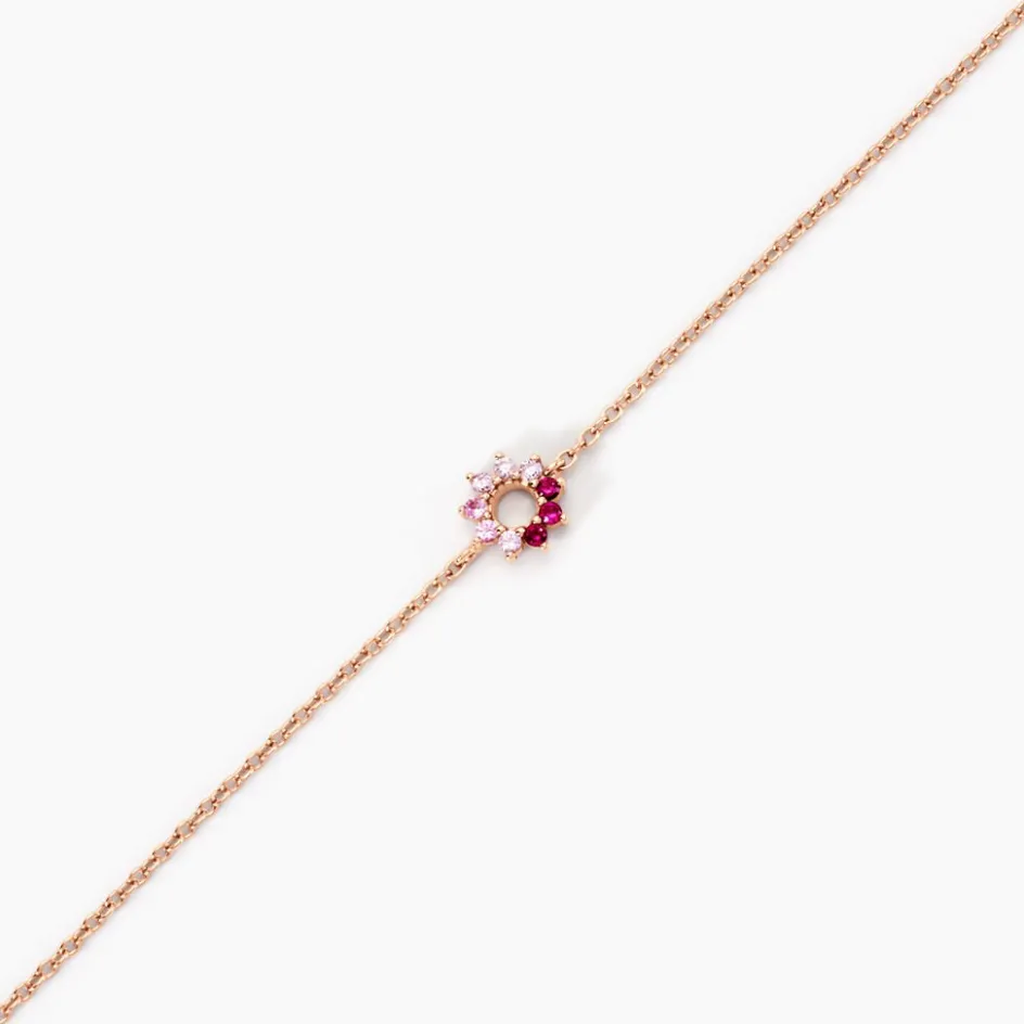 Bracelet Argent Rose 925/1000 Fleur Camaieu Rose Serti Griffes Oxydes De Zirconium Maille Forçat 18.5 Cm