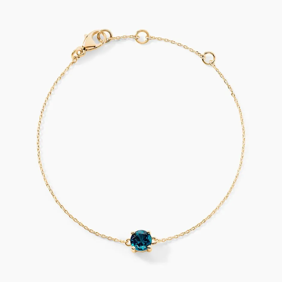 Bracelet Plaqué Or Jaune Oxyde De Zirconium Bleu 6mm 4 Griffes Maille Forçat 19cm