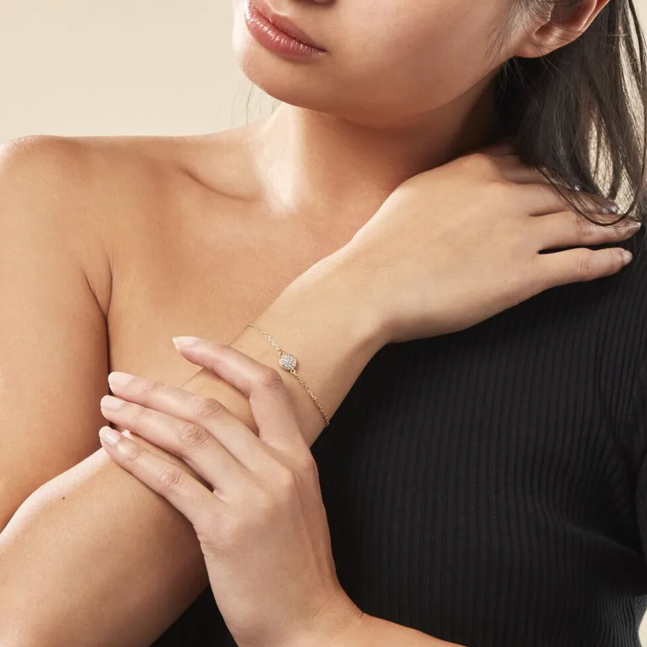 Bracelet Plaqué Or Jaune Rond Pavage Oxydes De Zirconium Maille Forcat 18cm