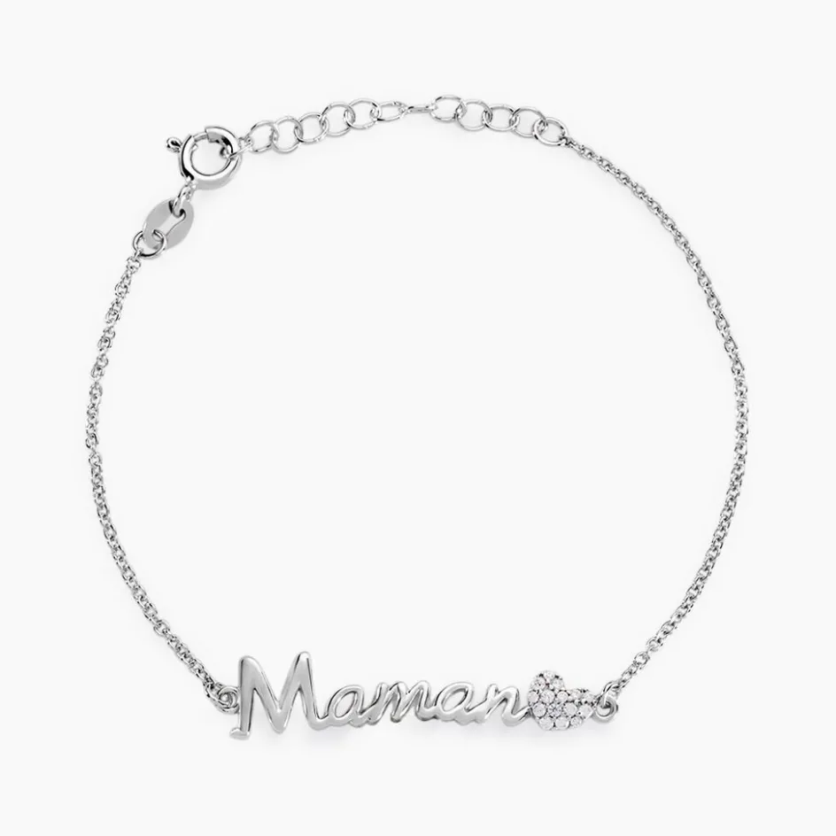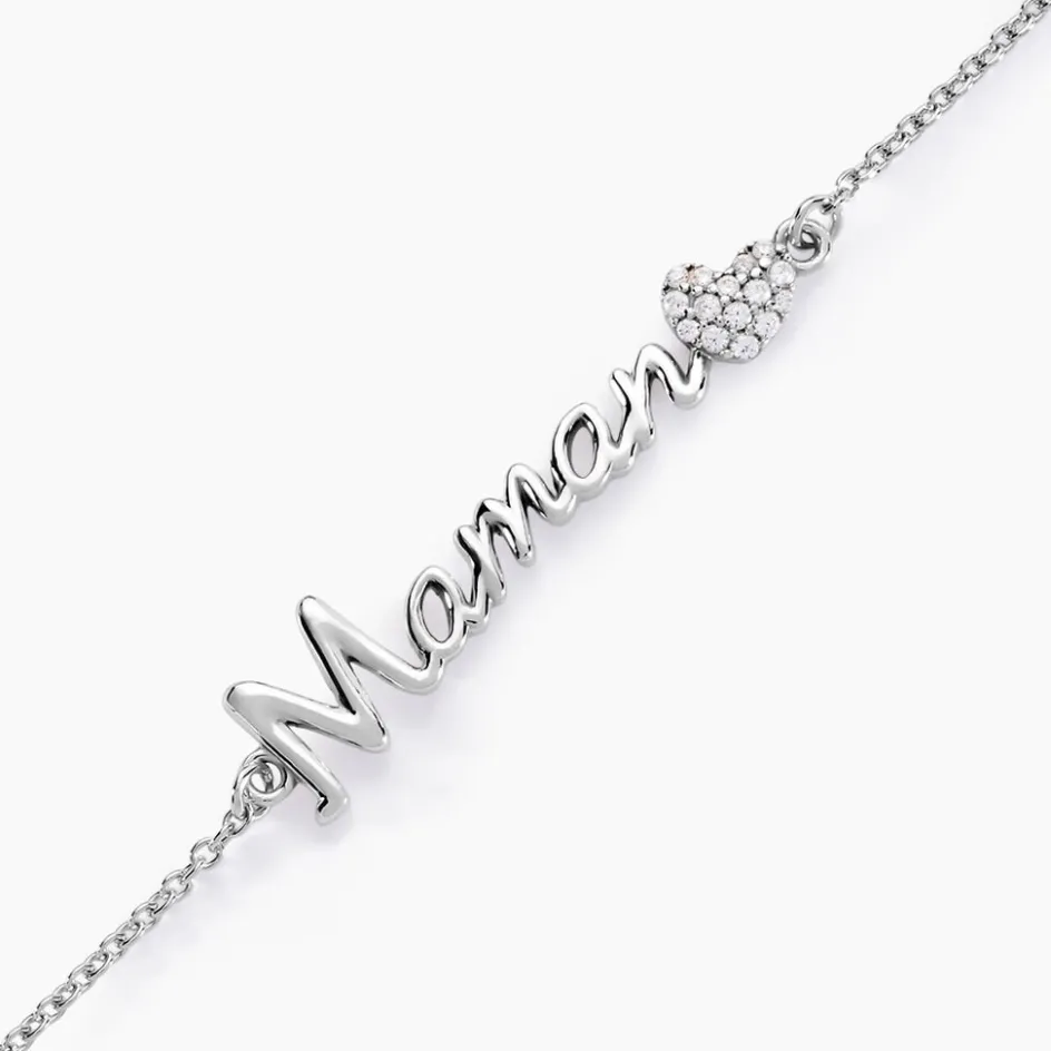 Bracelet Argent 925/1000 rera Message Maman Et C艙ur Pavage Oxydes De Zirconium 18.5cm