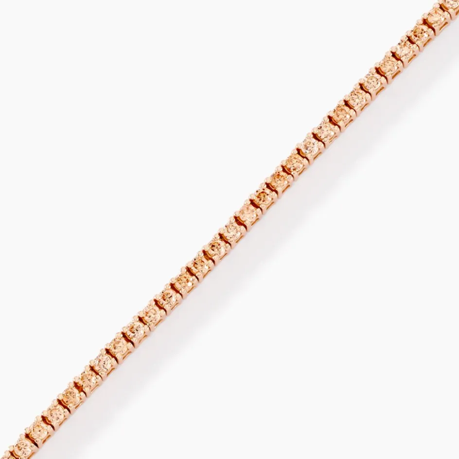 Bracelet Ajustable Argent Rose 925/1000 Maille Tennis Oxydes De Zirconium Champagne Serti 4 Griffes 2mm 17+2cm