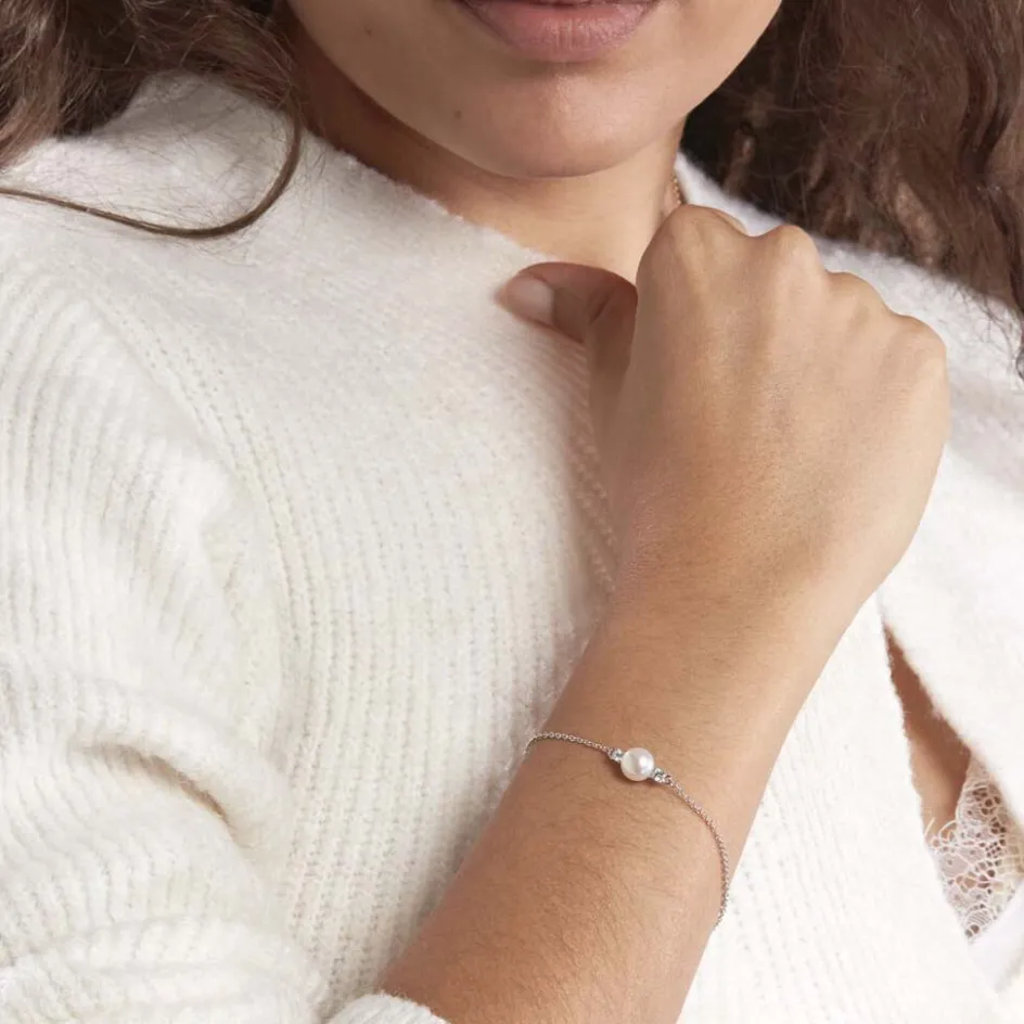 Bracelet Argent Blanc 925/1000 Perle De Culture 7-7.5mm Et Oxydes De Zirconium 18.5cm