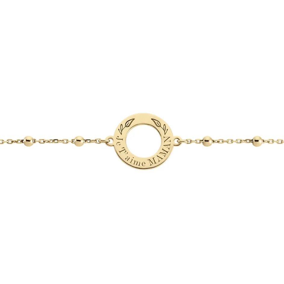 Bracelet Plaqué Or Jaune Cercle Message Je T’aime Maman Maille Forcat Et Boules 19cm