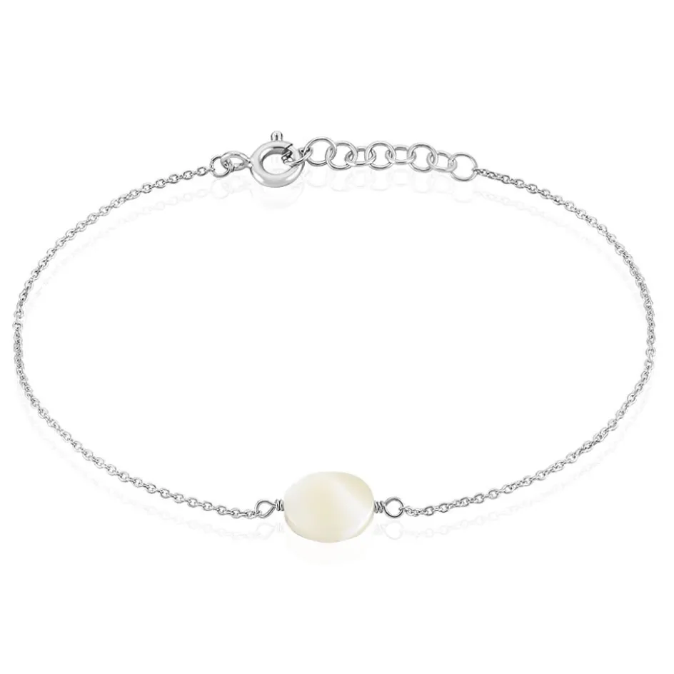 Bracelet Argent Blanc 925/1000 Pierre Nacre Blanche Maille Forcat 18.5cm
