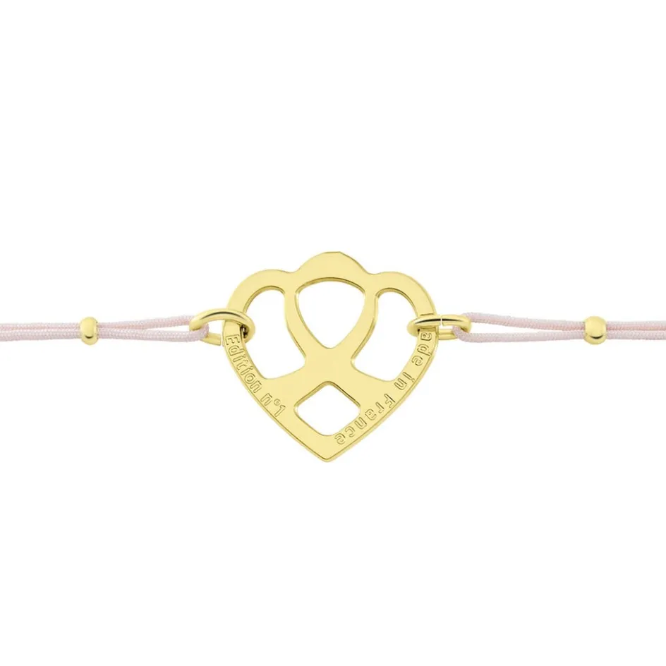 Bracelet Solidaire Lutte Contre Le Cancer Laiton Doré Motif C艙ur Cordon Rose 21cm