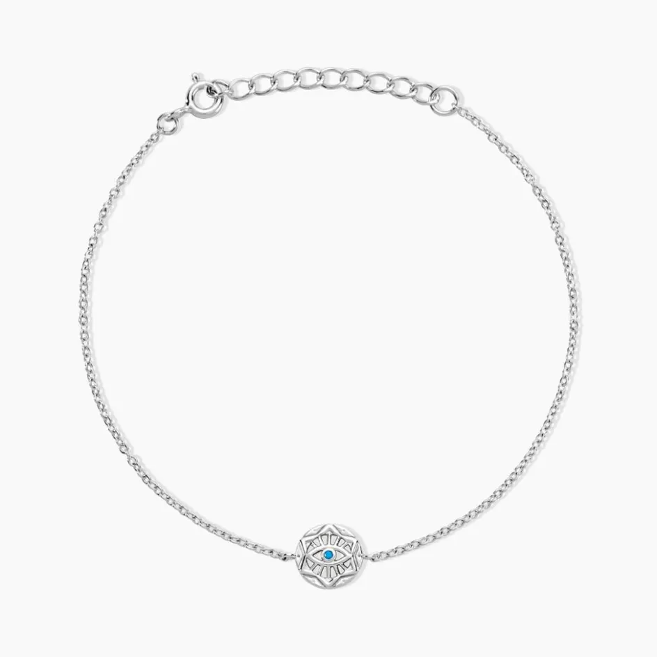 Bracelet Argent Blanc 925/1000 艙il Turc Oxyde De Zirconium Turquoise Maille Jaseron 17+3cm