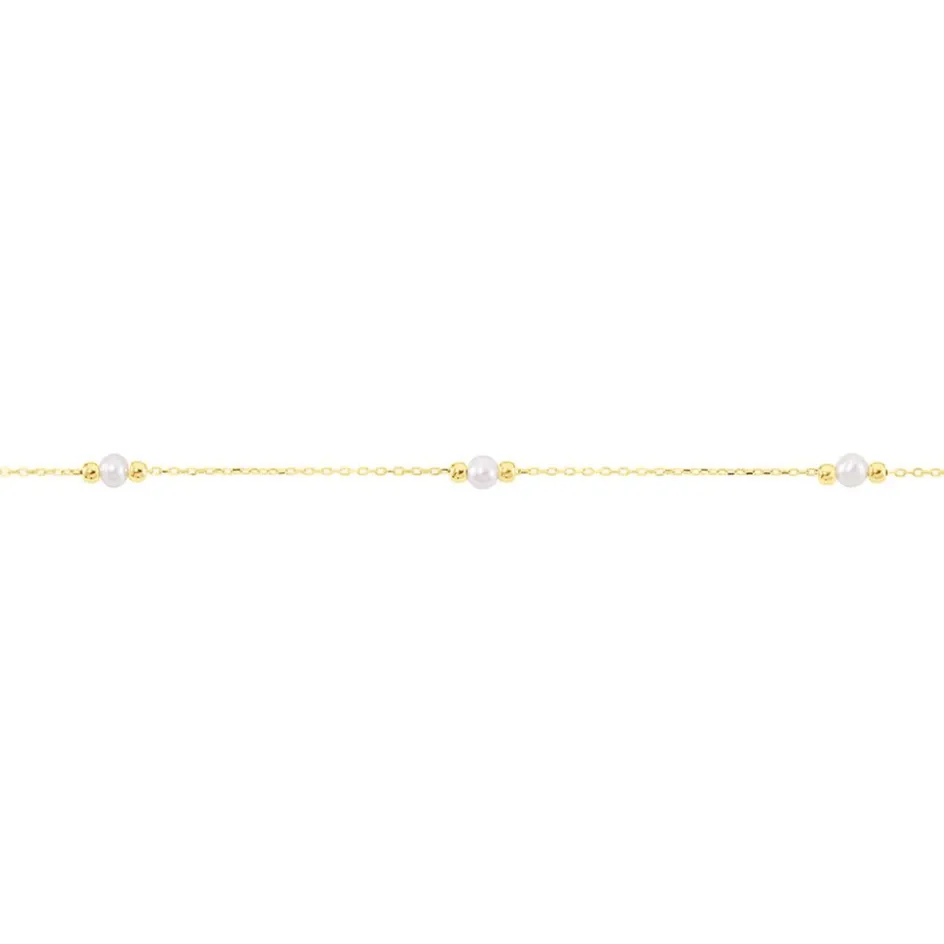 Chaine De Cheville Or Jaune 375/1000 5 Perles De Culture Maille Forcat 24cm