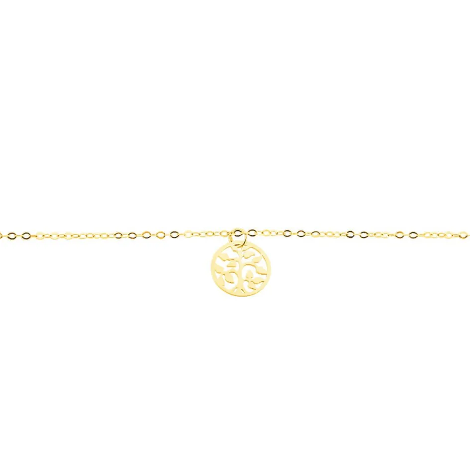 Chaine De Cheville Or Jaune 375/1000 Arbre De Vie Maille Jaseron 24cm