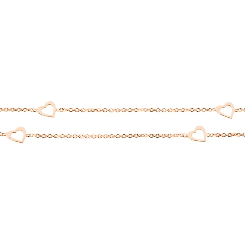 Chaine De Cheville Argent Rose 925/1000 Coeurs Multiple Double Mailles Forcat 26cm