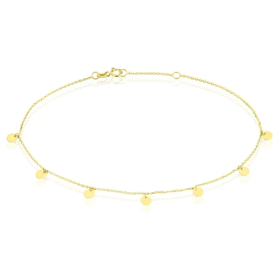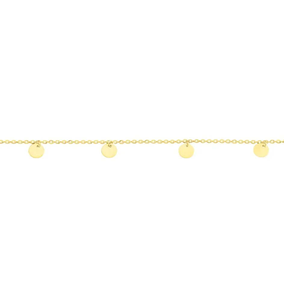 Chaine De Cheville Or Jaune 375/1000 Pastilles Pendantes Maille Jaseron 22+2cm