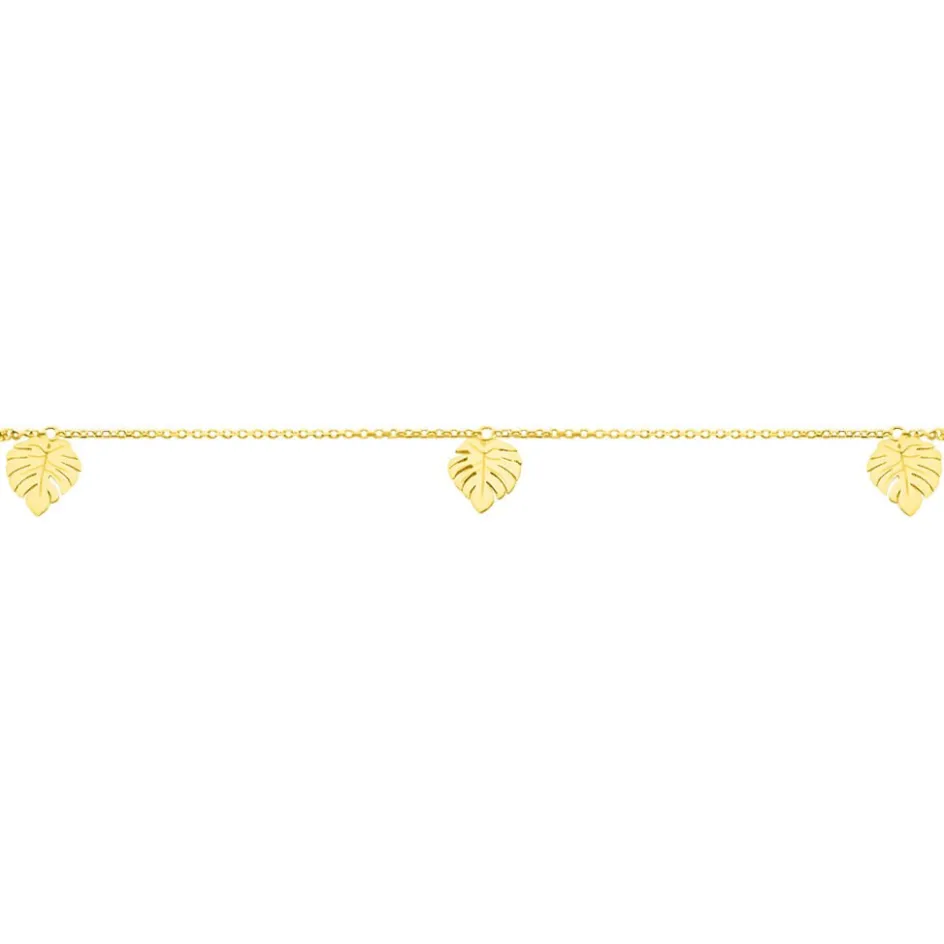 Chaine De Cheville Or Jaune 375/1000 Pampilles Motifs Feuilles Tropicales Maille Jaseron 24cm