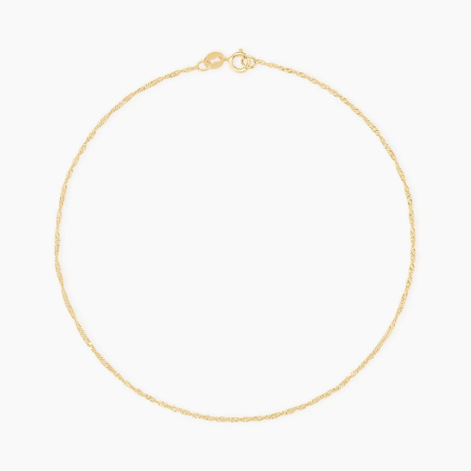 Chaine De Cheville Or Jaune 375/1000 Maille Singapour 1mm 24cm